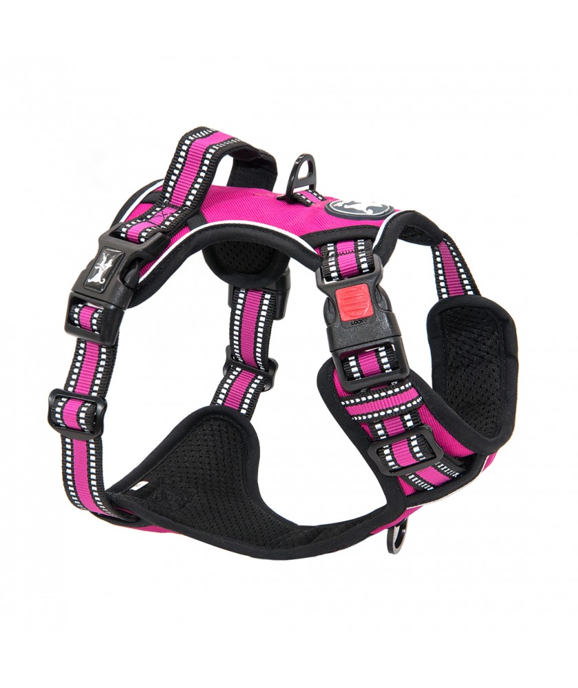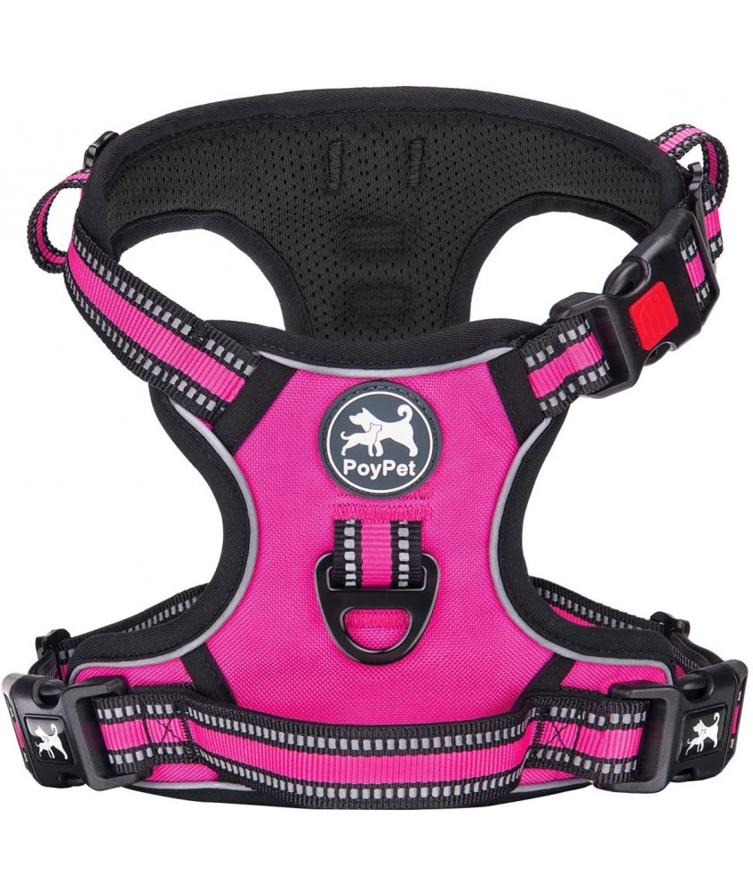PoyPet [Upgrated] No Pull Dog Harness - 3M Reflective - [Release at Neck] ( Fushsia )
