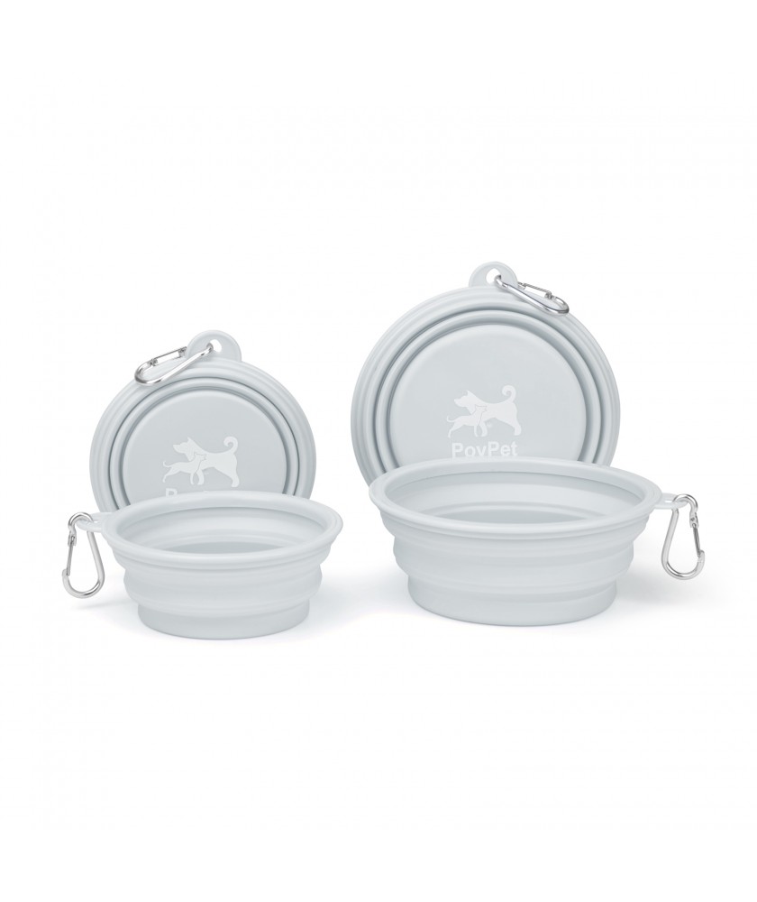 4. Suitable for Pet--Each bowl holds up to 12/24 fluid ounces of water or 1.5/3 cups of pet food, suitable for Small, Medium Dogs and Cats to store water and food when going outside.